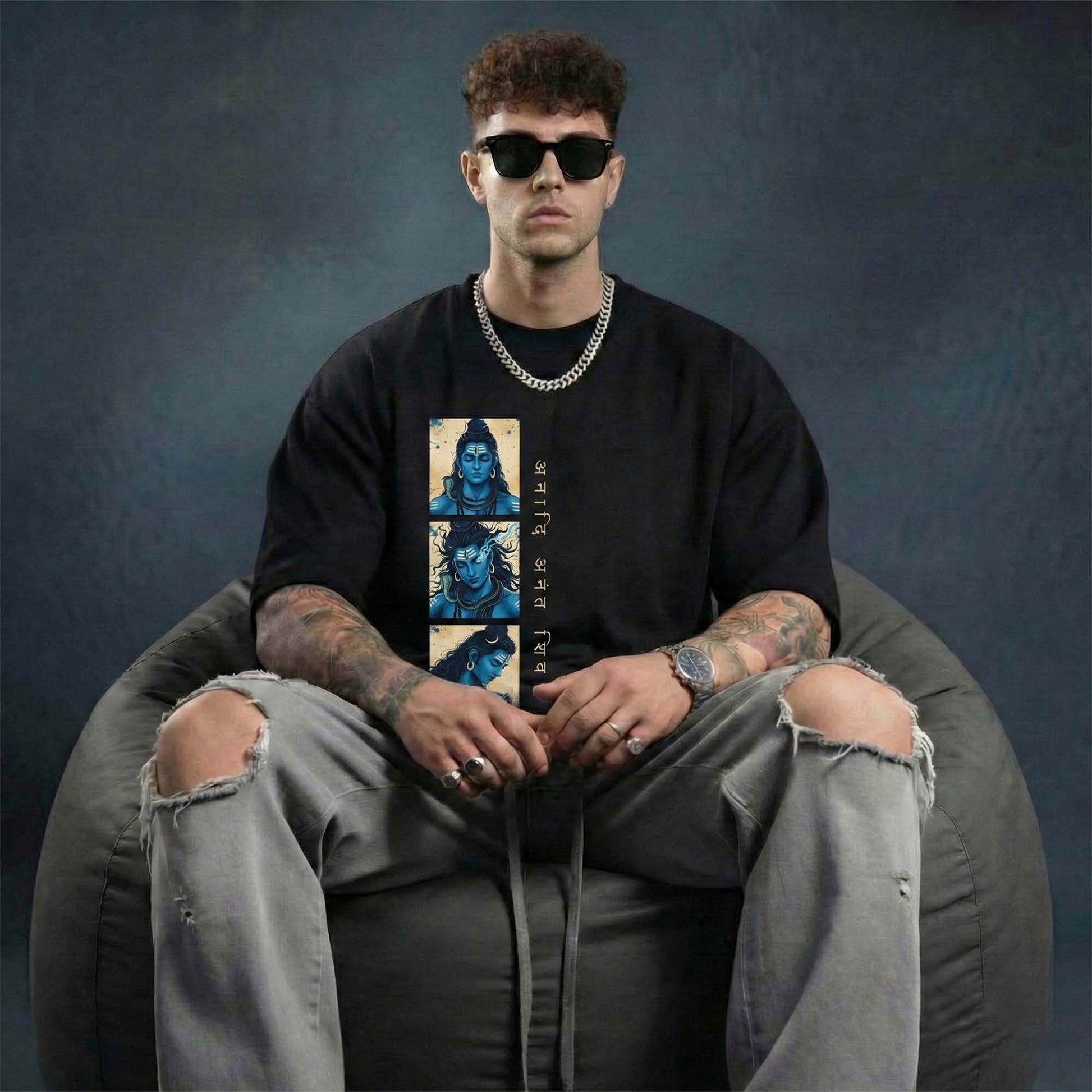 This premium oversized tee blends modern streetwear with spiritual aesthetics — perfect for devotees, yoga lovers, meditation practitioners, and men who resonate with Mahadev’s energy. The deep black base makes the blue Shiva artwork stand out boldly while keeping the look calm and powerful.
