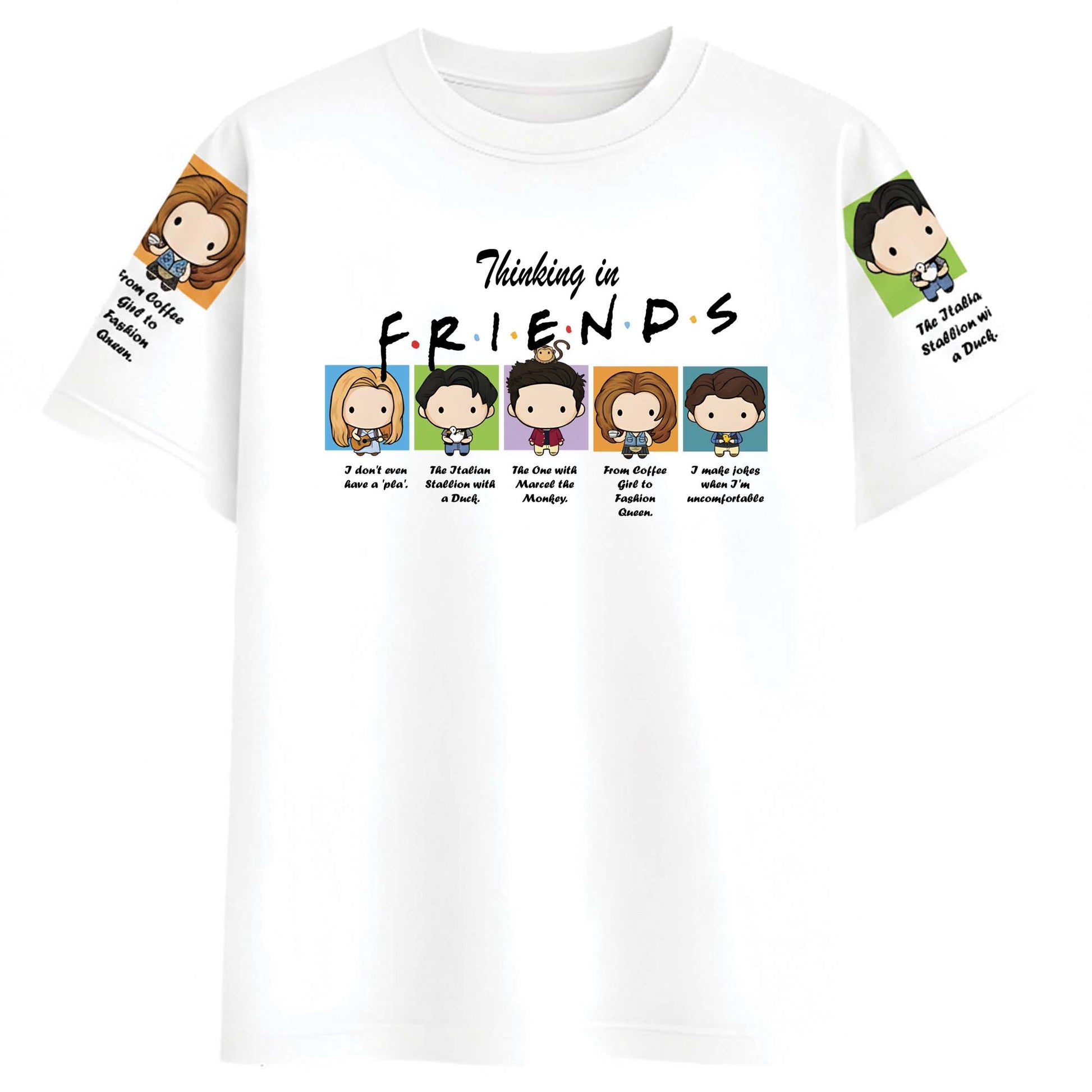 Upgrade your casual style with the Thinking in Friends Graphic Oversized T-Shirt for Men. This trendy t-shirt features cute cartoon characters inspired by friendship moments along with humorous quotes that give it a unique and eye-catching look.